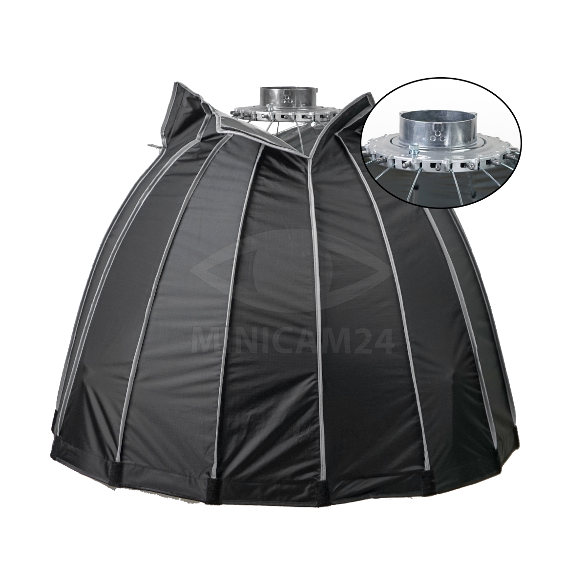 Софтбокс оснащен байонетом типа Bowens, что делает его совместимым с большинством студийных светильников и вспышек.