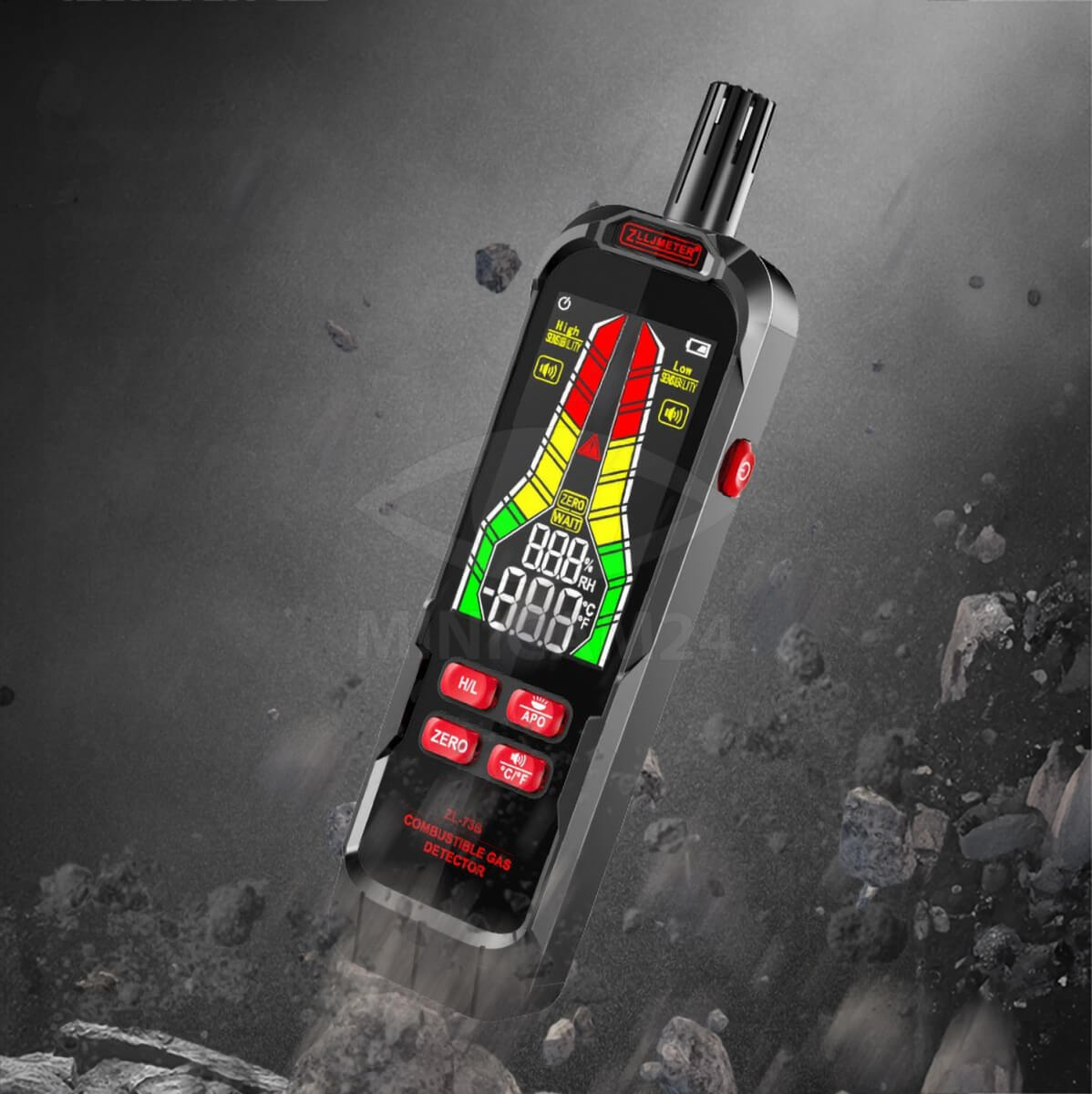 Детектор утечки горючих газов использует высокоточные датчики, которые позволяют безопасно обнаруживать и тестировать различные типы горючих газов. Цветной ЖК-дисплей автоматически подбирает соответствующий цвет света в зависимости от измеренной концентрации.