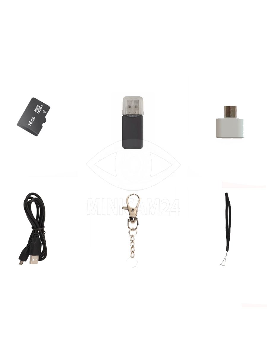 Мини-камера работает от полимерного аккумулятора емкостью 180 мАч, обеспечивая до 100 минут автономной работы. Для зарядки используется стандартный интерфейс DC-5V, что позволяет легко восстановить заряд устройства. Поддержка TF-карт делает процесс хранения и переноса данных быстрым и удобным. Компактность и легкость камеры делают её идеальным аксессуаром для ношения в виде брелока.