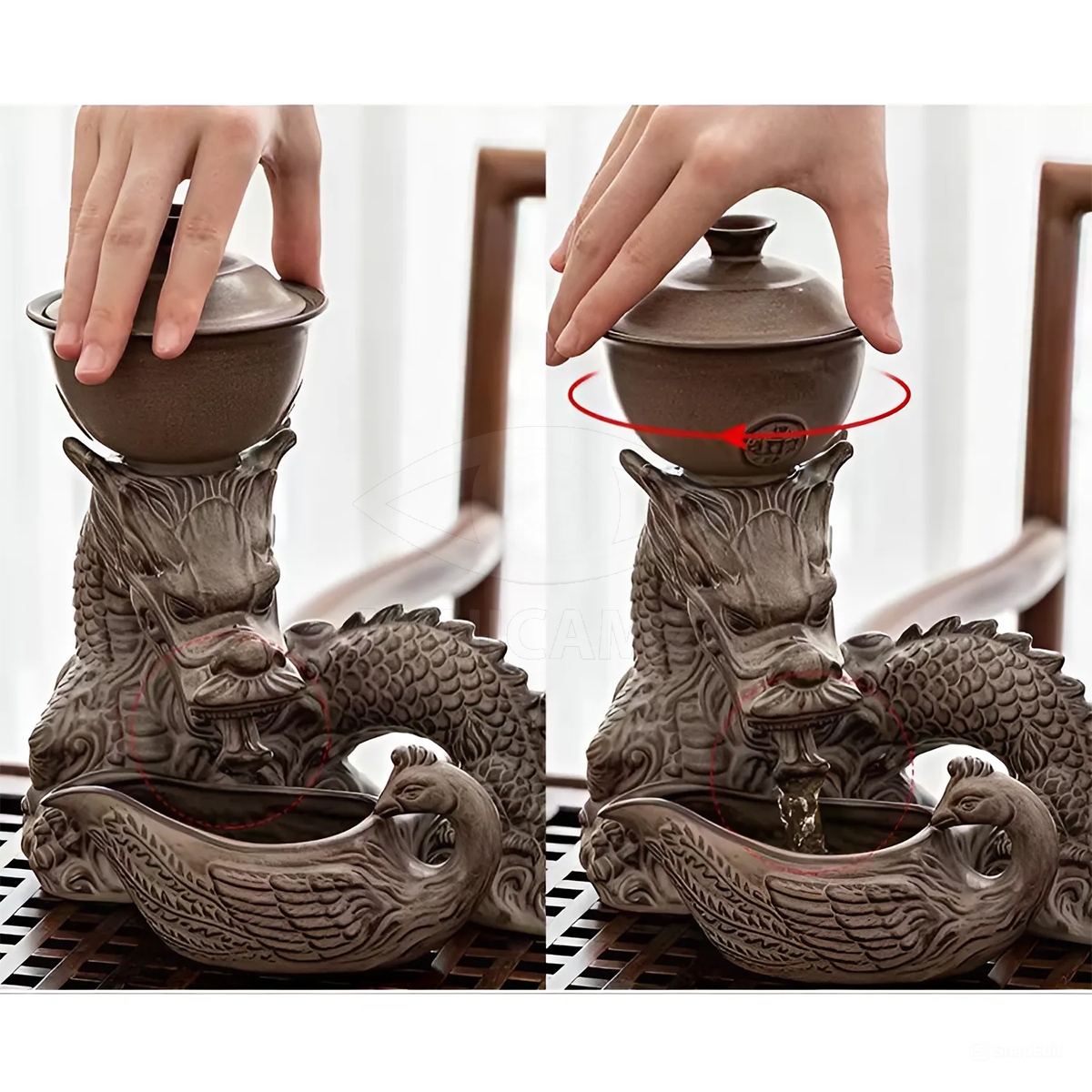 Дополнительно в комплект входит сливник для аккуратного переливания чая, а также подставка для гайвани. Набор Del Drago станет отличным подарком для любителей восточной чайной культуры и прекрасно впишется в интерьер благодаря изысканному керамическому исполнению.